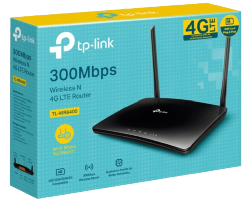 The TP-Link MR6400 router is a wireless N 4G LTE router that offers unmatched convenience and versatility, the perfect solution from relaxing at home to working in a remote location.